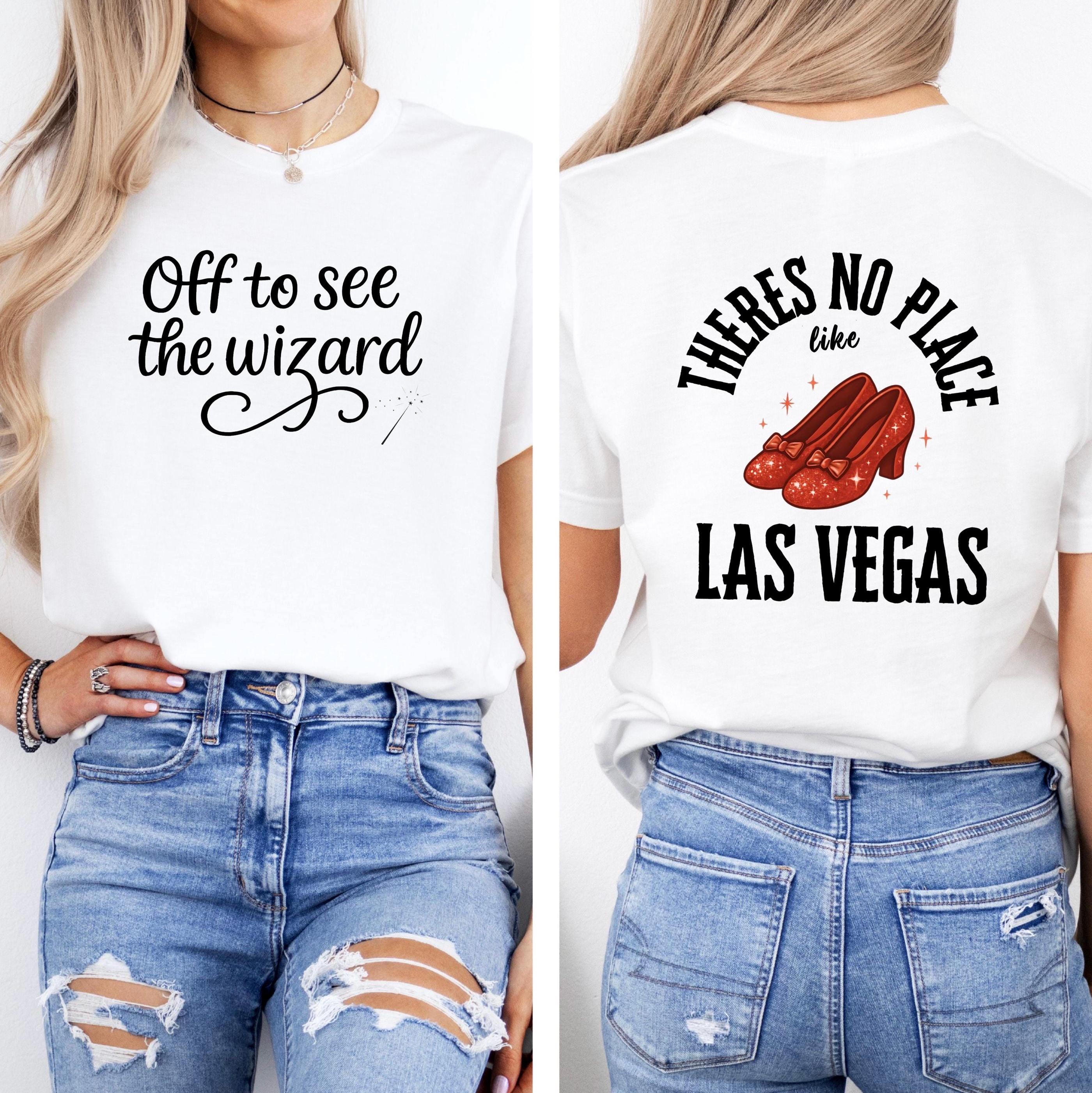 This Las Vegas-inspired tee features a design reminiscent of the iconic wizard of oz. It gives off a fun and whimsical vibe, perfect for those who love unique and nostalgic graphics. This shirt is ideal for fans of the wizard of oz or anyone looking to add a touch of magic to their wardrobe. It's great for casual wear or as a statement piece for various occasions and holidays.